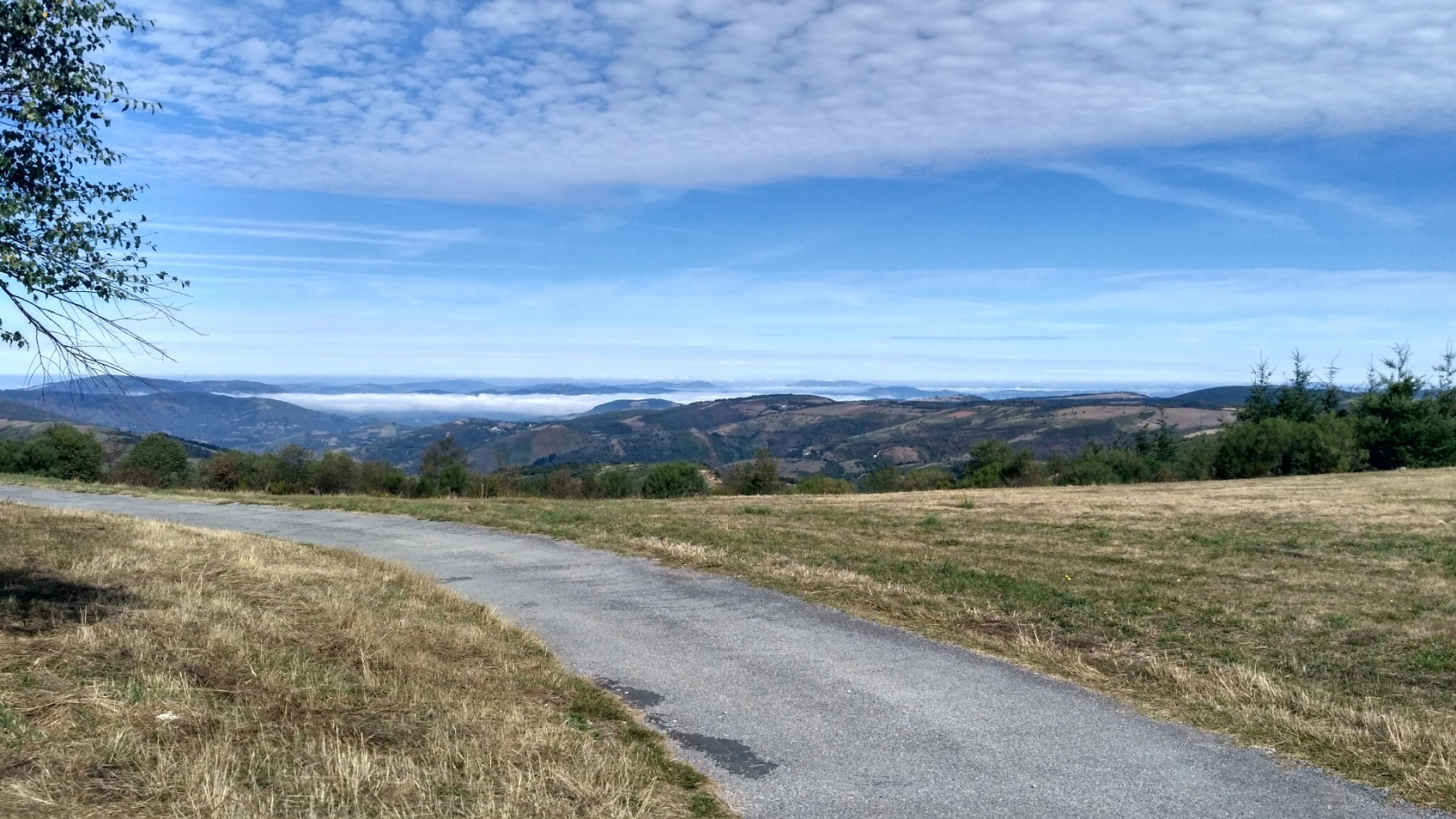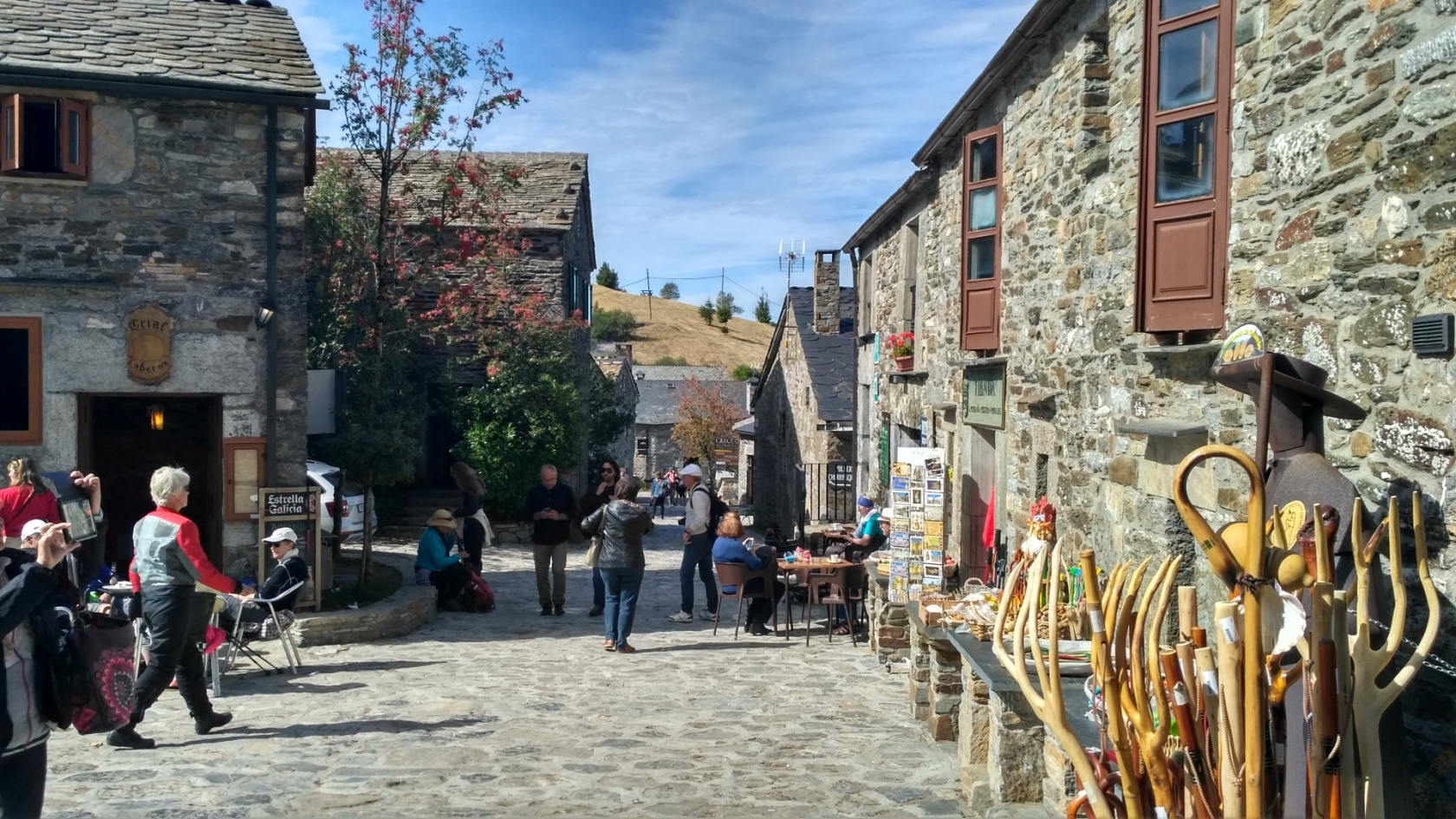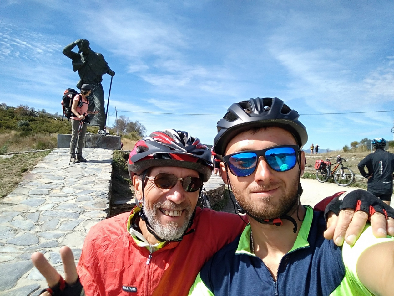 На старте как всегда холодно, утренние 9 градусов, до 11 утра еду максимально медленно. Плавненько проезжаю 20км., просыпаюсь, завтракаю, и начинаю подъем. К сожалению, он оказался весь асфальтовым. По пути я обгоняю человек 5 едущих без багажа, с последним мадридцем завязывается разговор. Минут 20 ехали параллельно и общались, потом он сказал, что скоро будет небольшой посёлок, в котором можно перекусить, выпить что-нибудь, и что он со своей компанией собирается это сделать, потому что после последние 100-150 метров набора будут еще более сложными. Я вежливо отказываюсь со словами, что я отдохнул пока мы ехали рядом, и уезжаю вперёд без остановки. Наверху меня ожидала старенькая аутентичная горная деревня и толпы туристов, ну и красивые виды, безусловно. Пока отдыхал и обедал познакомился с вело-дедами, подумал, что такую старость я бы вполне хотел.