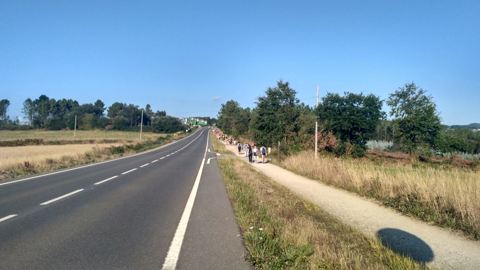Однако, остаётся всего 100 километров до цели №1 — Сантьяго. Как обычно, утренний «сайлент-хилл», всякий кантри-сайд и прочее. А затем, часов в 9-10 утра я в прямом смысле слова упёрся в очередь! Помучавшись пол часа, я решаю что сейчас не грех съехать на асфальт. Дело в том, что последние 100км. пути, считаются достаточными для пешего странника, чтобы получить официальный документ подтверждающий паломничество. В результате на этом отрезке широченная колонна из обычных туристов с мини рюкзачками, которые вышли на прогулку. Благо к 11-12 большинство пешеходов расселось по барам и я смог поехать в нормальном режиме.